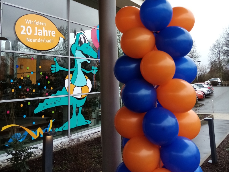 Am 17.02.2026 feierte das Neanderbad in Erkrath sein 20-jähriges Jubiläum. Wir stellten einige Ballonsäulen für den Innen- und Außenbereich. Danke an die Stadtwerke Erkrath für die angenehme Zusammenarbeit, wir freuen uns auf mehr!